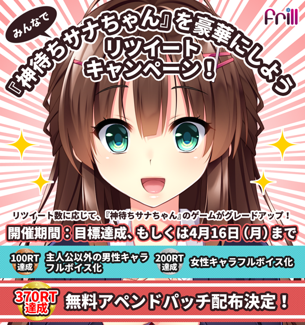 総リツイート数370(サナちゃん)ごとに、サナちゃんが1人増え、当選者数が1名アップ!